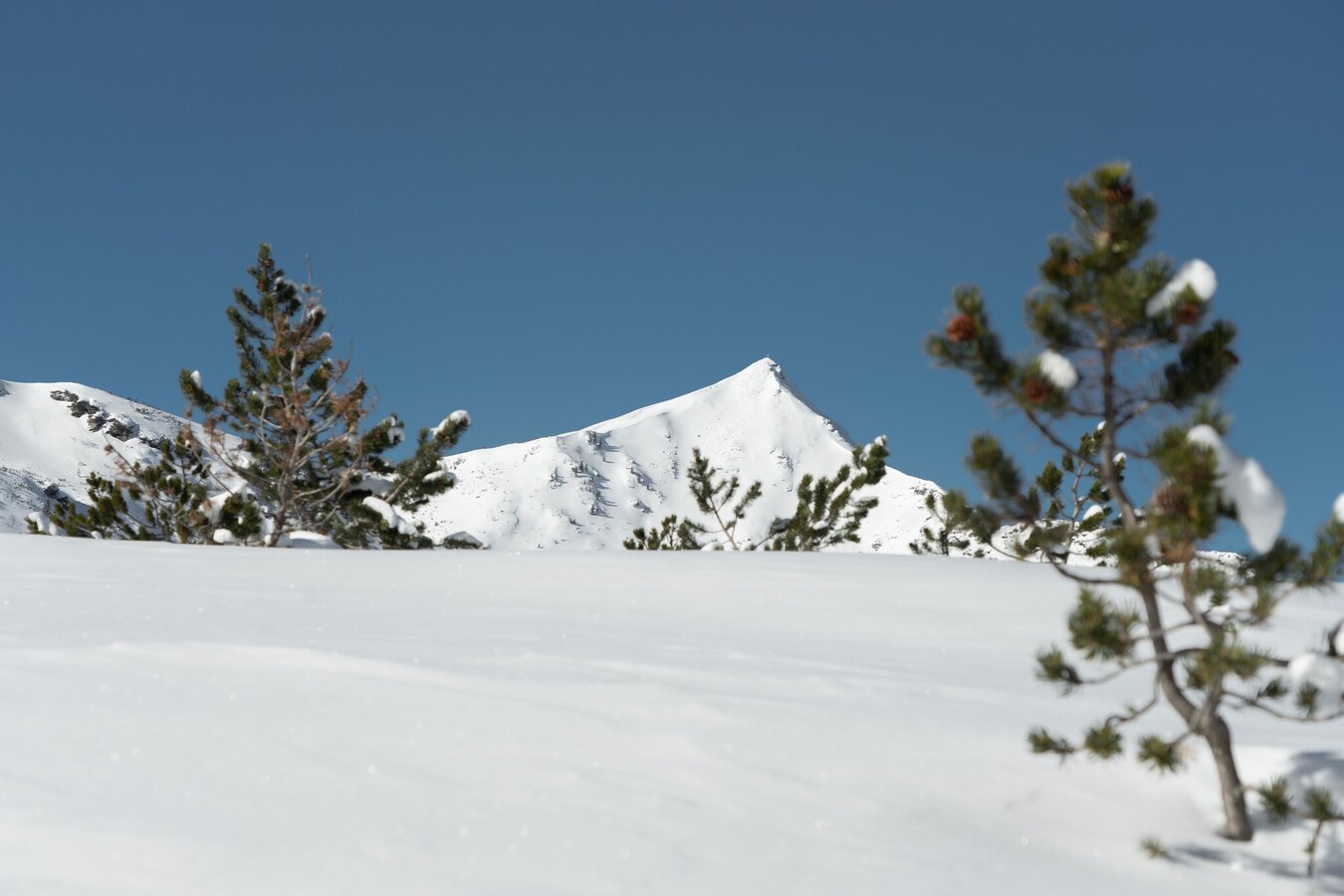 To the right of the Kinderland you start. You hike along the toboggan run and the marked high-altitude trail until you reach a small hut, after which you keep to the right again and climb uphill until you reach the forest. Once you have reached the Plannerkessel, an impressive view of the surrounding mountain panorama opens up to you. Across snow-covered mountain pine fields you now make a flat loop before you make your way back to the mountain village along the same path.
